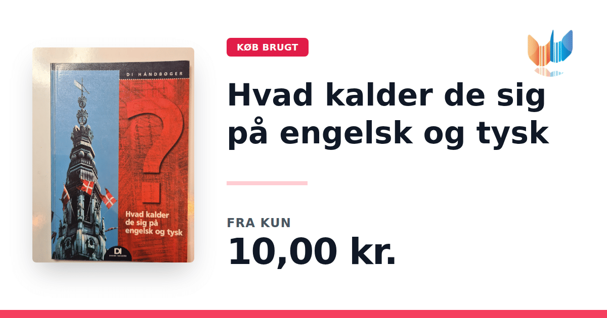 Lige nu kan du købe "Hvad kalder de sig på engelsk og tysk" til kun 10,00 kr. Bogen du ser her er brugt, og i god stand. Vi har i øjeblikket kun et enkelt eksemplar til salg af "Hvad kalder de sig på engelsk og tysk", så slå til mens du kan!