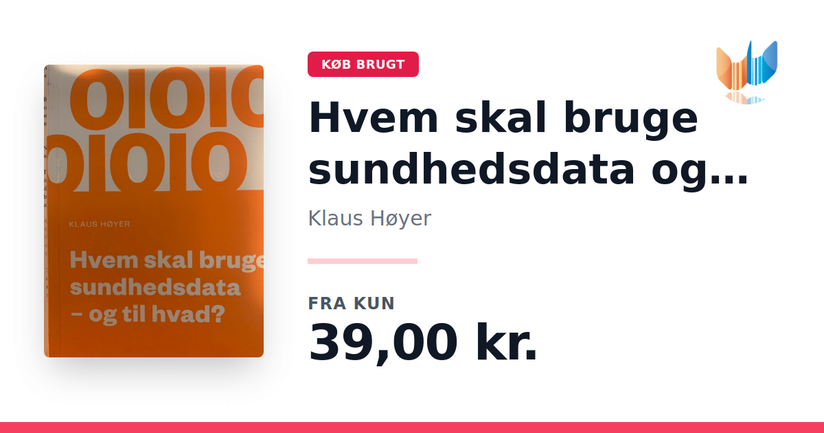 Lige nu kan du købe "Hvem skal bruge sundhedsdata og til hvad?" af Klaus Høyer til kun 39,00 kr. Bogen du ser her er brugt, og i perfekt stand. Vi har i øjeblikket kun et enkelt eksemplar til salg af "Hvem skal bruge sundhedsdata og til hvad?", så slå til mens du kan!