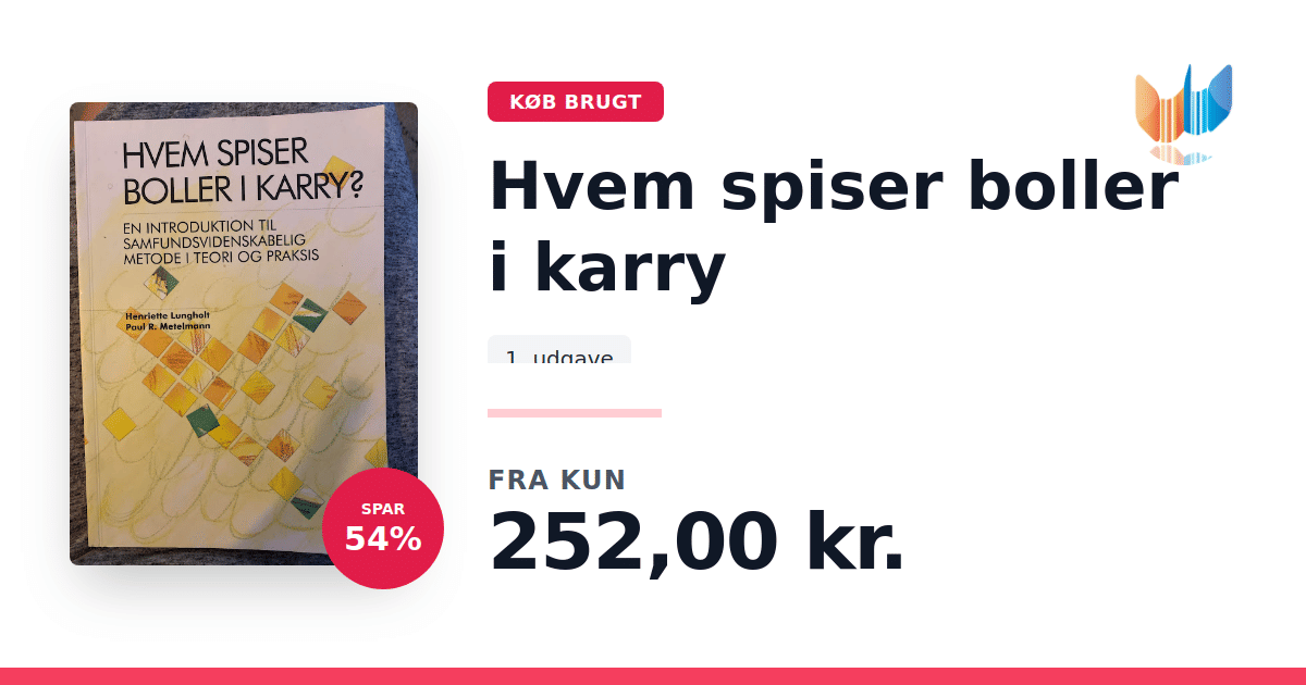 Lige nu kan du købe "Hvem spiser boller i karry" til kun 252,00 kr. Du sparer hele 54% af nyprisen! Bogen du ser her er brugt, og i god stand. Vi har i øjeblikket kun et enkelt eksemplar til salg af "Hvem spiser boller i karry", så slå til mens du kan!