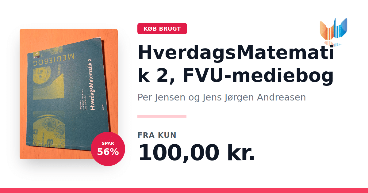 Lige nu kan du købe "HverdagsMatematik 2, FVU-mediebog" af Per Jensen og Jens Jørgen Andreasen til kun 100,00 kr. Du sparer hele 56% af nyprisen! Bogen du ser her er brugt, og i god stand. Vi har i øjeblikket kun et enkelt eksemplar til salg af "HverdagsMatematik 2, FVU-mediebog", så slå til mens du kan!