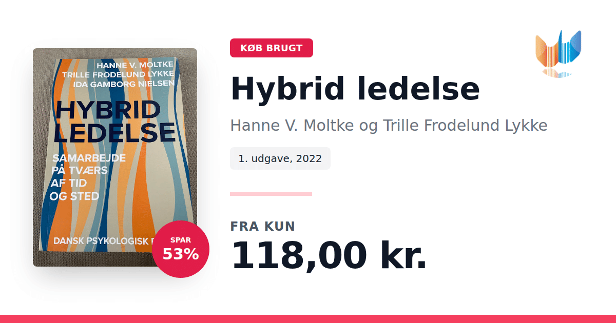 Lige nu kan du købe "Hybrid ledelse" af Hanne V. Moltke og Trille Frodelund Lykke til kun 118,00 kr. Du sparer hele 53% af nyprisen! Bogen du ser her er brugt, og i god stand. Vi har i øjeblikket kun et enkelt eksemplar til salg af "Hybrid ledelse", så slå til mens du kan!