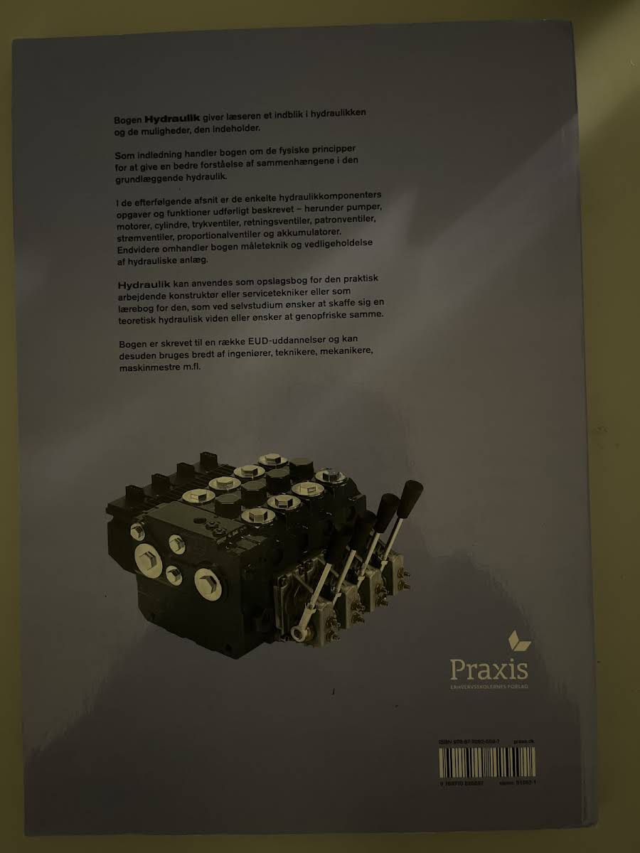 Bogen Hydraulik, forfattet af Kaj Holmegaard, præsenterer de grundlæggende fysiske principper bag hydraulik og giver en dybdegående forståelse for teknikkens indbyrdes sammenhænge. Indledningsvis introduceres læseren til de teoretiske fundamenter, som danner basis for en klar og systematisk tilgang til emnet. I de efterfølgende kapitler uddybes de enkelte komponenters funktion og opgaver – herunder pumper, motorer, cylindre, trykventiler, retningsventiler, patronventiler, strømventiler, proportionalventiler samt akkumulatorer. Bogen indeholder desuden en grundig redegørelse for måleteknik og vedligeholdelse af hydrauliske anlæg. Hydraulik er et alsidigt værk, der egner sig som både opslagsbog for den praktiske konsulent og tekniker samt som en selvstudiebog for dem, der ønsker at opbygge eller genopfriske deres viden om området.