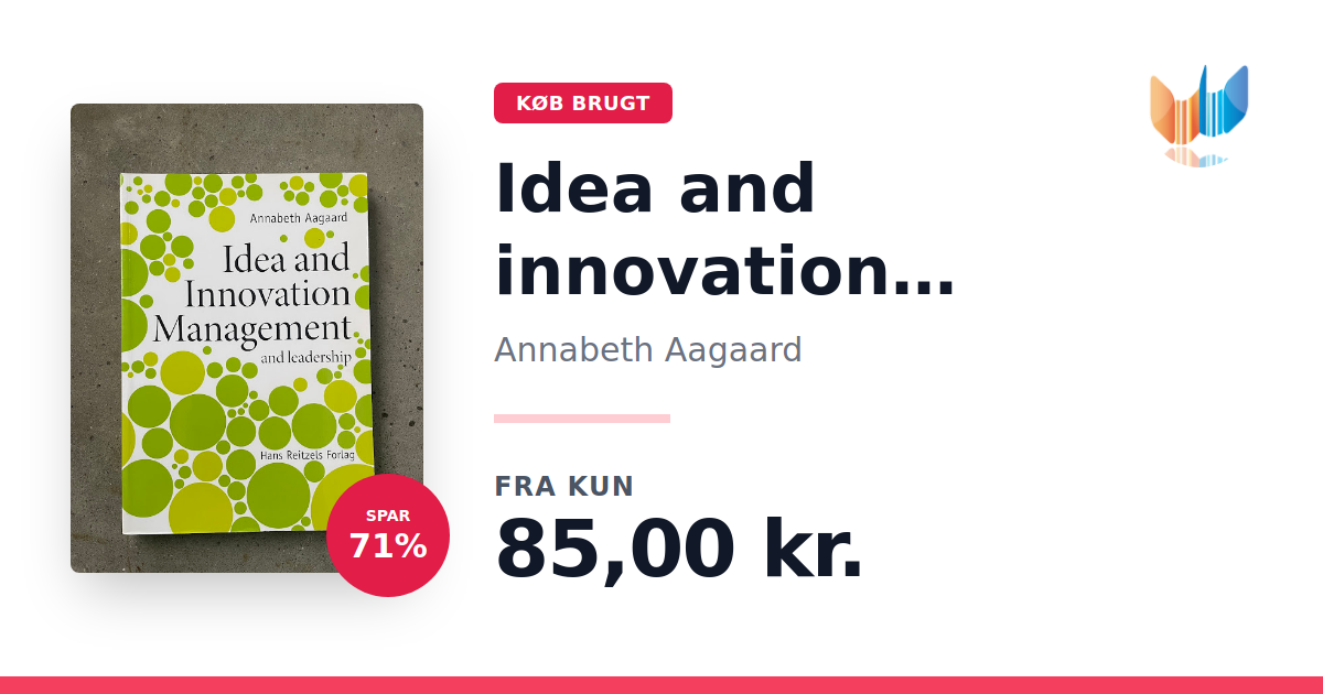 Lige nu kan du købe "Idea and innovation management - and leadership" af Annabeth Aagaard til kun 85,00 kr. Du sparer hele 71% af nyprisen! Bogen du ser her er brugt, og i perfekt stand. Vi har i øjeblikket 2 eksemplarer til salg af "Idea and innovation management - and leadership", så husk at se de forskellige udgaver.