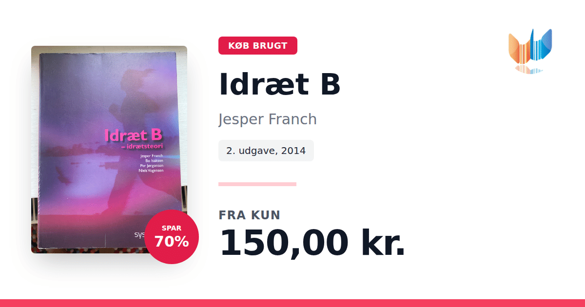 Lige nu kan du købe "Idræt B" af Jesper Franch til kun 150,00 kr. Du sparer hele 70% af nyprisen! Bogen du ser her er brugt, og i god stand. Vi har i øjeblikket kun et enkelt eksemplar til salg af "Idræt B", så slå til mens du kan!