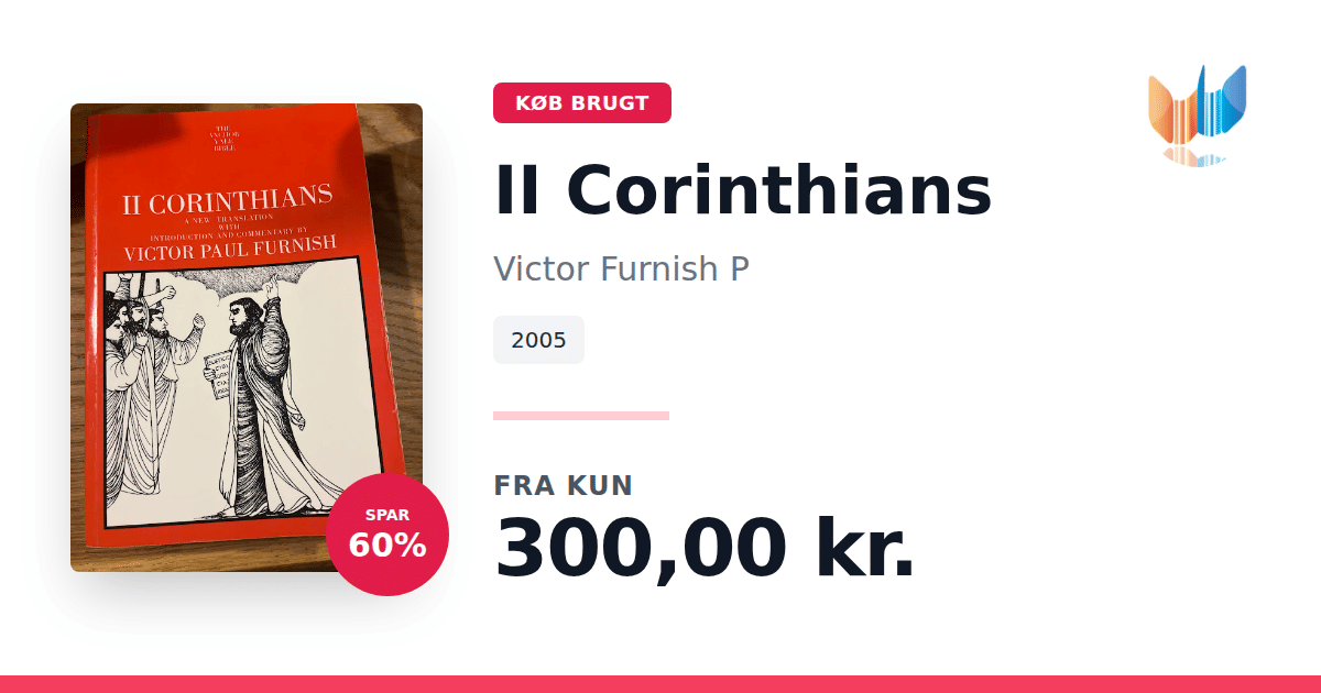 Lige nu kan du købe "II Corinthians" af Victor Furnish P til kun 300,00 kr. Du sparer hele 60% af nyprisen! Bogen du ser her er brugt, og i god stand. Vi har i øjeblikket kun et enkelt eksemplar til salg af "II Corinthians", så slå til mens du kan!