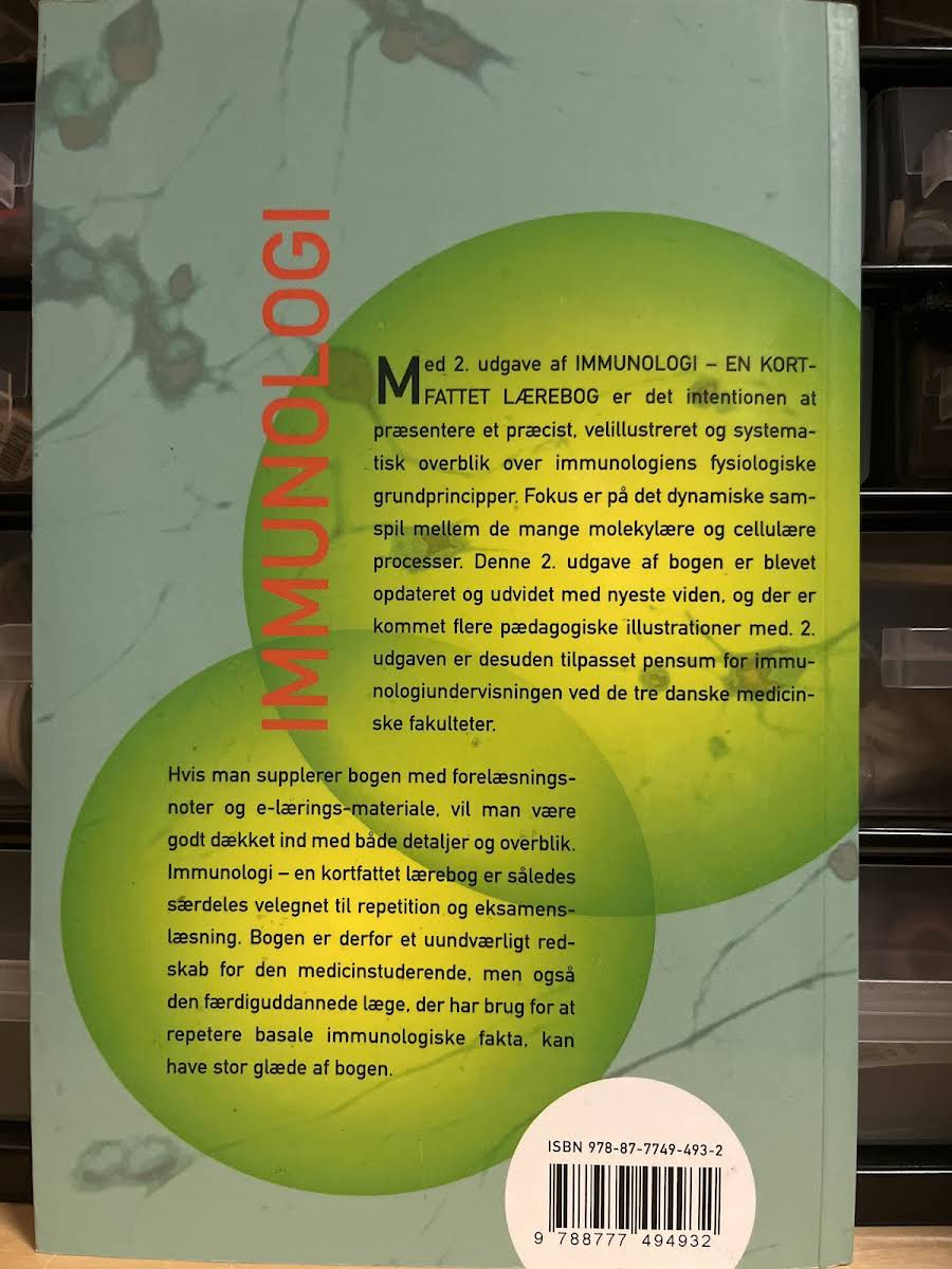 2. udgave af Immunologi giver et fokuseret og velillustreret overblik over immunologiens centrale fysiologiske principper. Bogen formidler på en systematisk måde samspillet mellem molekylære og cellulære processer, hvilket gør den til et redskab, der både er pædagogisk og informativ. Denne udgave er opdateret med den nyeste videnskabelige indsigt og indeholder et væld af illustrationer, der understøtter den pædagogiske tilgang. Med særligt henblik på immunologiundervisningen ved de danske medicinske fakulteter, er bogen velegnet til både repetition og eksamenslæsning for medicinstuderende og læger, der ønsker at forny deres grundlæggende immunologiske viden.