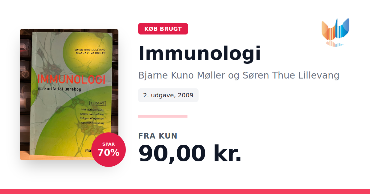 Lige nu kan du købe "Immunologi" af Bjarne Kuno Møller og Søren Thue Lillevang til kun 90,00 kr. Du sparer hele 70% af nyprisen! Bogen du ser her er brugt, og i god stand. Vi har i øjeblikket kun et enkelt eksemplar til salg af "Immunologi", så slå til mens du kan!