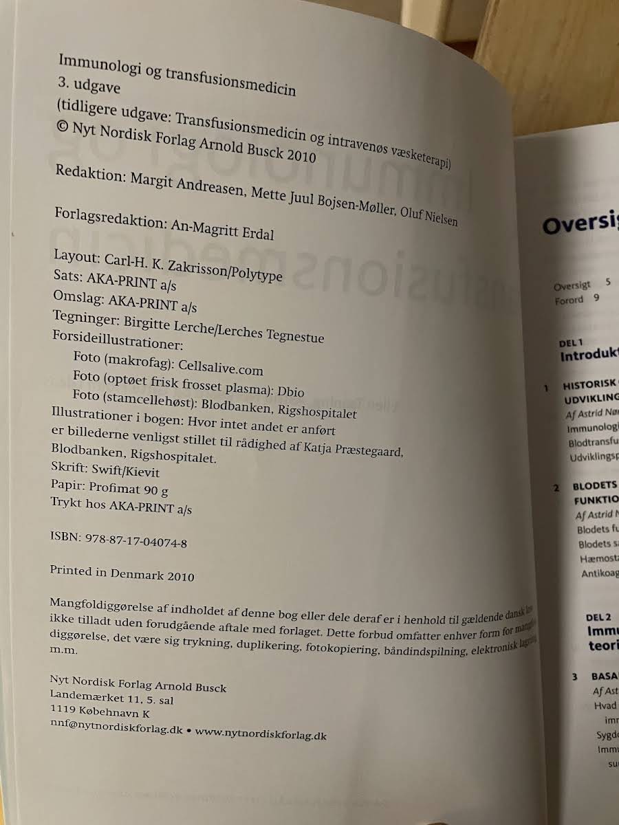 • Immunologi og transfusionsmedicin, Gitte Holm Glaas, Astrid Birgitte Nørgaard, Ellen Birkerod Taaning, 9788717040748