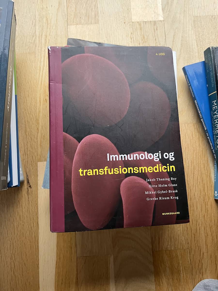 Den 4. udgave af Immunologi og transfusionsmedicin er en opdateret og gennemarbejdet lærebog, der henvender sig til studerende på en række professionsuddannelser samt praktiserende fagpersoner og lægestuderende. Bogen er udarbejdet af Jakob Thaning Bay, Gitte Holm Glaas, Grethe Risum Krog og Mikkel Gybel-Brask og repræsenterer en omfattende kilde til viden om både immunologi og transfusionsmedicin. Bogen er inddelt i tre dele. I den første del præsenteres immunologi i teori og praksis med fokus på både normale immunsvar og de situationer, hvor immunsystemet fejler. Kapitelindholdet omfatter immunologiske undersøgelsesmetoder, teknikker samt behandlingsstrategier – herunder aspekter ved transplantation. I den anden del lægges der vægt på transfusionsmedicin med redegørelser for blodtyper, serologiske metoder og den kliniske håndtering af transfusionskomplikationer. Der tilbydes desuden en detaljeret gennemgang af blodets vej fra donor til patient samt en præcis beskrivelse af de enkelte blodprodukter og deres kliniske anvendelser. Endelig fokuserer tredje del på anlæggelse, pleje og behandling af forskellige typer af intravenøse katetre. Med sin strukturerede opbygning og brede emneområde fungerer bogen både som en samlet lærebog og et værdifuldt opslagsværk, der opfylder behovet hos både studerende og etablerede fagfolk.