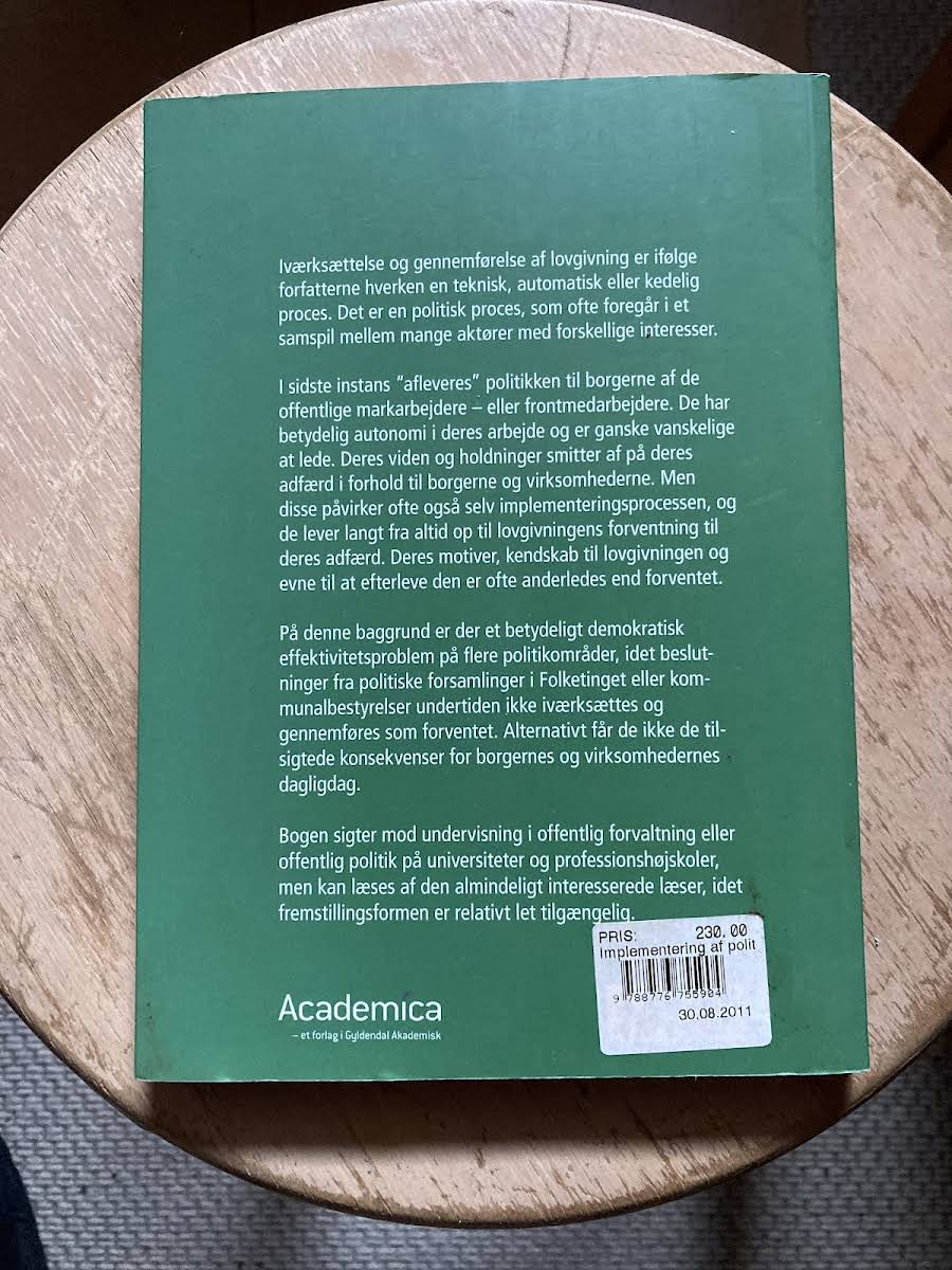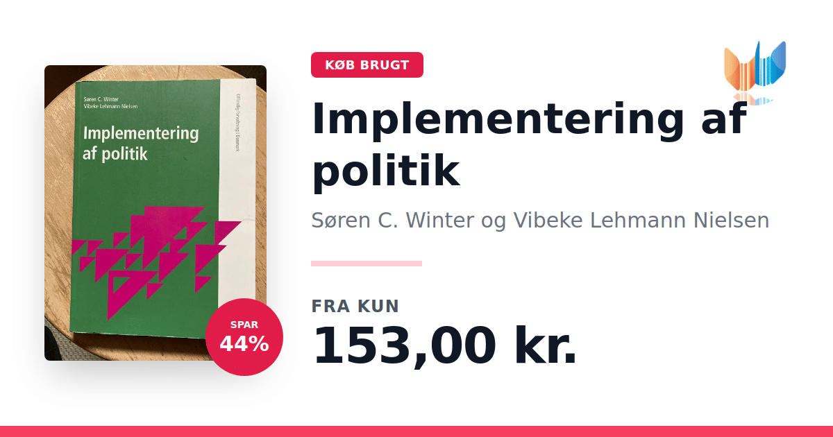 "Implementering af politik" giver en dybdegående introduktion til, hvordan offentlig politik omsættes til praksis gennem en lang række komplekse og ofte uforudsigelige processer. Bogen belyser, hvordan lovgivning og politiske beslutninger sjældent implementeres på en teknisk eller automatisk måde, men i stedet formes af de mange aktørers interesser og deres indbyrdes samspil. Forfatterne Søren C. Winter og Vibeke Lehmann Nielsen illustrerer, hvordan frontmedarbejdernes viden og holdninger får afgørende betydning for den endelige lovgivningspraksis, og hvordan den vanskelige ledelsesrolle over for disse frontlinjepersoner spiller en central rolle i implementeringsprocessen. Bogen henvender sig særligt til studerende med interesse for offentlig forvaltning og politik, der ønsker at opnå en nuanceret forståelse for de udfordringer og beslutningsprocesser, der følger med gennemførelsen af politiske tiltag.
