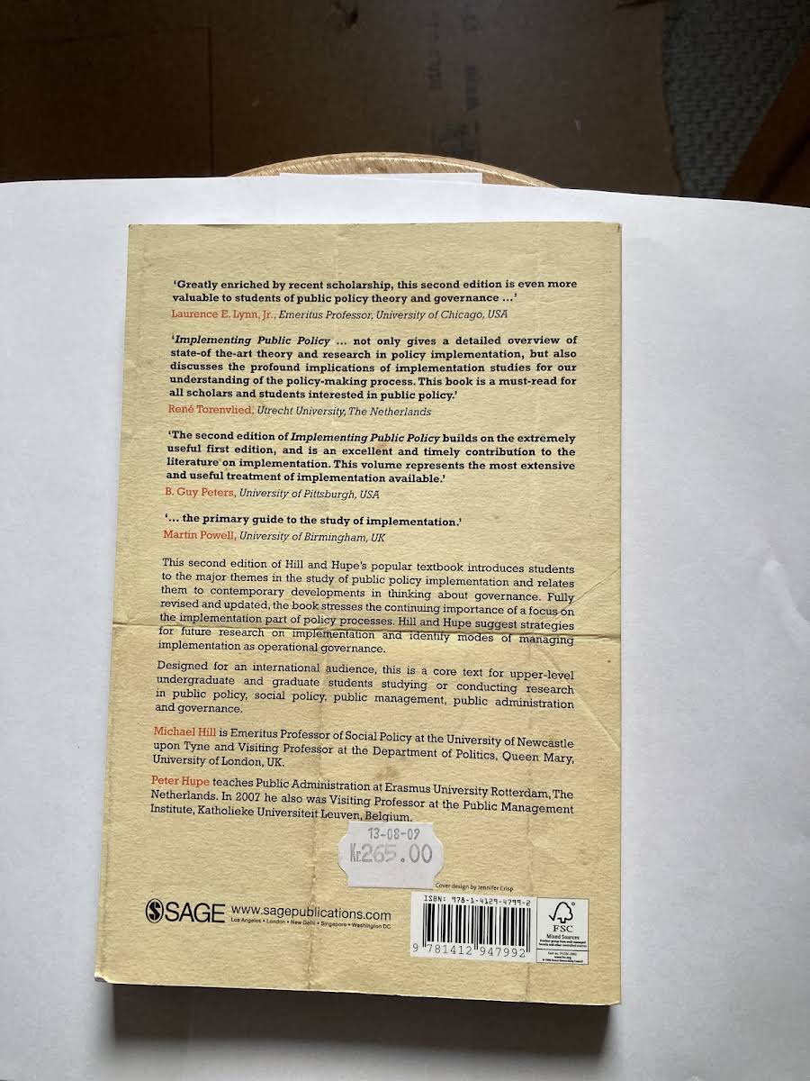 • Implementing Public Policy, Michael Hill, Peter L. Hupe, 9781412947992