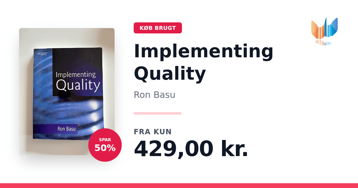 Lige nu kan du købe "Implementing Quality" af Ron Basu til kun 429,00 kr. Du sparer hele 50% af nyprisen! Bogen du ser her er brugt, og i god stand. Vi har i øjeblikket kun et enkelt eksemplar til salg af "Implementing Quality", så slå til mens du kan!