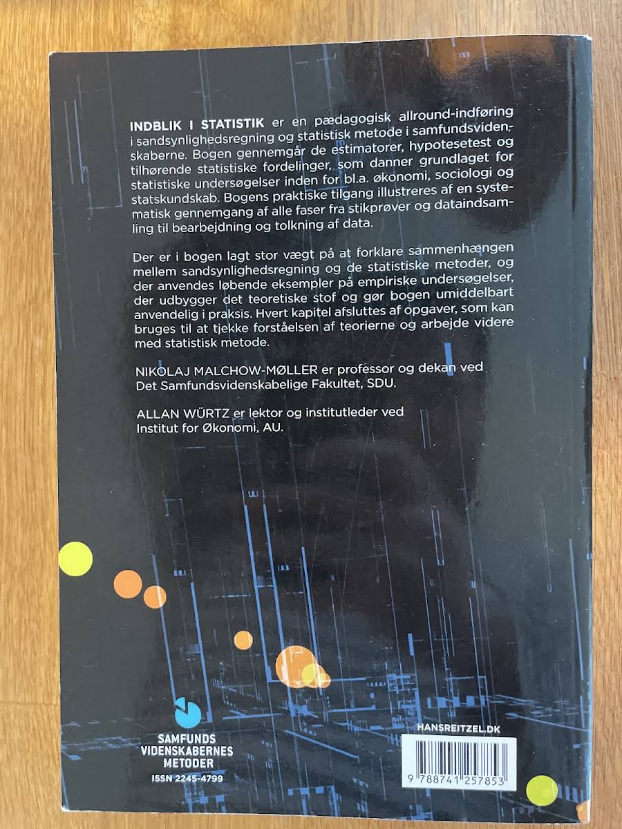 "Indblik i statistik" byder på en grundig introduktion til statistik med et særligt fokus på samfundsvidenskabelige metoder. Bogen dykker ned i alt fra stikprøver og dataindsamling til bearbejdning og fortolkning af data – alt sammen præsenteret gennem en kombination af teori og praktiske eksempler. På denne måde får læseren en helhedsforståelse af, hvordan statistik anvendes i virkelige analyser og undersøgelser. Med 467 sider tilbyder denne lærebog en systematisk gennemgang af de centrale statistiske fordelinger og hypotesetest, der er essentielle for videregående uddannelser. Hvert kapitel afsluttes med relevante opgaver, der både understøtter læringen og giver mulighed for at afprøve den tilegnede viden. Bogen er et værdifuldt redskab for studerende og undervisere, der ønsker at få et indblik i statistik med en praktisk og anvendelsesorienteret tilgang.