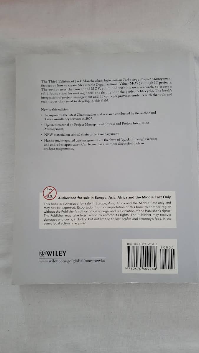 Den tredje udgave af Jack T. Marchewkas Information Technology Project Management har som omdrejningspunkt at skabe Measurable Organizational Value (MOV) gennem velstrukturerede IT-projekter. Med udgangspunkt i forfatterens egen forskning lægger bogen et solidt beslutningsgrundlag, der guider læseren gennem alle faser af projektets livscyklus. Kombinationen af projektledelse og IT-koncepter sikrer, at studerende får de nødvendige værktøjer og teknikker til at mestre dette felt. I denne opdaterede udgave er de seneste Chaos-studier og Marchewkas 2007-forskning i samarbejde med Tata Consultancy Services integreret. Materialet om projektledelsesprocesser og projektintegration er revideret, og der er tilføjet nyt indhold om kritisk kæde-projektledelse. Bogen indeholder endvidere praktiske "hurtig-tænkning"-øvelser samt afsluttende cases, der kan danne udgangspunkt for klasseundervisning eller individuelle opgaver. Information Technology Project Management fremhæver MOV som centralt tema og præsenterer de værktøjer, der er mest relevante i hver fase af livscyklussen. De ni vidensområder fra Project Management Institutes PMBOK indgår elegant i gennemgangen, og en konsekvent vidensstyringstilgang løber som en rød tråd gennem hele teksten. Desuden medfølger en CD-ROM med en prøveversion af MS Project 2007, så studerende får hands-on erfaring med branchens førende planlægningsværktøj.