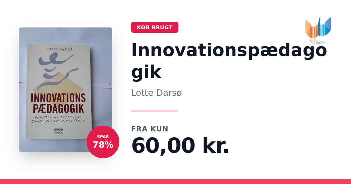 Lige nu kan du købe "Innovationspædagogik" af Lotte Darsø til kun 60,00 kr. Du sparer hele 78% af nyprisen! Bogen du ser her er brugt, og i perfekt stand. Vi har i øjeblikket 3 eksemplarer til salg af "Innovationspædagogik", så husk at se de forskellige udgaver.