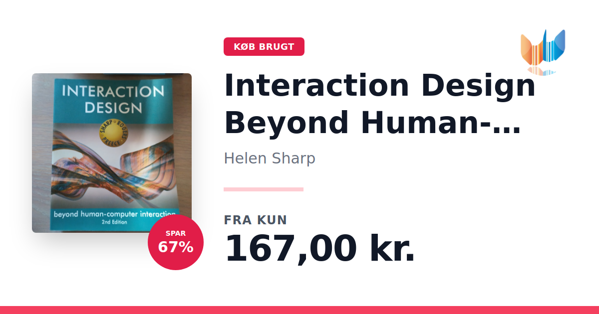 Interaction Design af Helen Sharp, Jenny Preece og Yvonne Rogers vender stærkt tilbage i en opdateret 2. udgave. Denne udgave bygger videre på klassikerens kerne inden for menneske-computer-interaktion og præsenterer et bredt, brugercentreret perspektiv på designprocessen. Bogen indeholder helt nye kapitler om grænseflader, indsamling af data samt analyse og fortolkning af resultater. Du får adgang til den nyeste forskning og et væld af nye eksempler, der illustrerer teoriens anvendelse i praksis. Hertil kommer et komplet farveprint, som gør illustrationer og figurer levende og nemme at forstå. Som noget helt særligt følger en dynamisk og interaktiv hjemmeside med, hvor studerende kan samarbejde om eksperimenter, deltage i designkonkurrencer og dele ressourcer. Med sin praktiske, procesorienterede tilgang viser bogen ikke blot hvilke principper der anbefales, men også præcis hvordan de kan implementeres i ethvert interaktionsdesignprojekt.