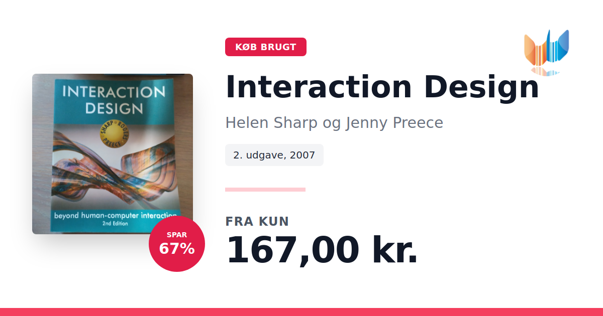 Interaction Design af Helen Sharp, Jenny Preece og Yvonne Rogers vender stærkt tilbage i en opdateret 2. udgave. Denne udgave bygger videre på klassikerens kerne inden for menneske-computer-interaktion og præsenterer et bredt, brugercentreret perspektiv på designprocessen. Bogen indeholder helt nye kapitler om grænseflader, indsamling af data samt analyse og fortolkning af resultater. Du får adgang til den nyeste forskning og et væld af nye eksempler, der illustrerer teoriens anvendelse i praksis. Hertil kommer et komplet farveprint, som gør illustrationer og figurer levende og nemme at forstå. Som noget helt særligt følger en dynamisk og interaktiv hjemmeside med, hvor studerende kan samarbejde om eksperimenter, deltage i designkonkurrencer og dele ressourcer. Med sin praktiske, procesorienterede tilgang viser bogen ikke blot hvilke principper der anbefales, men også præcis hvordan de kan implementeres i ethvert interaktionsdesignprojekt.