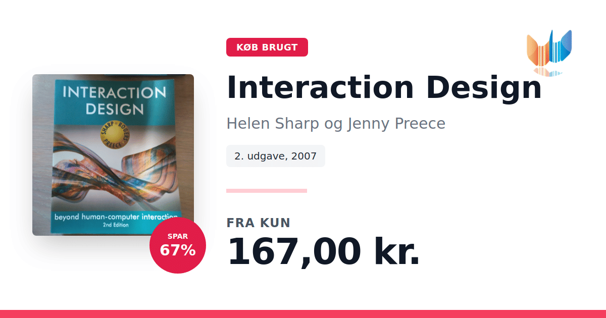 Lige nu kan du købe "Interaction Design" af Helen Sharp og Jenny Preece til kun 167,00 kr. Du sparer hele 67% af nyprisen! Bogen du ser her er brugt, og i perfekt stand. Vi har i øjeblikket 3 eksemplarer til salg af "Interaction Design", så husk at se de forskellige udgaver.