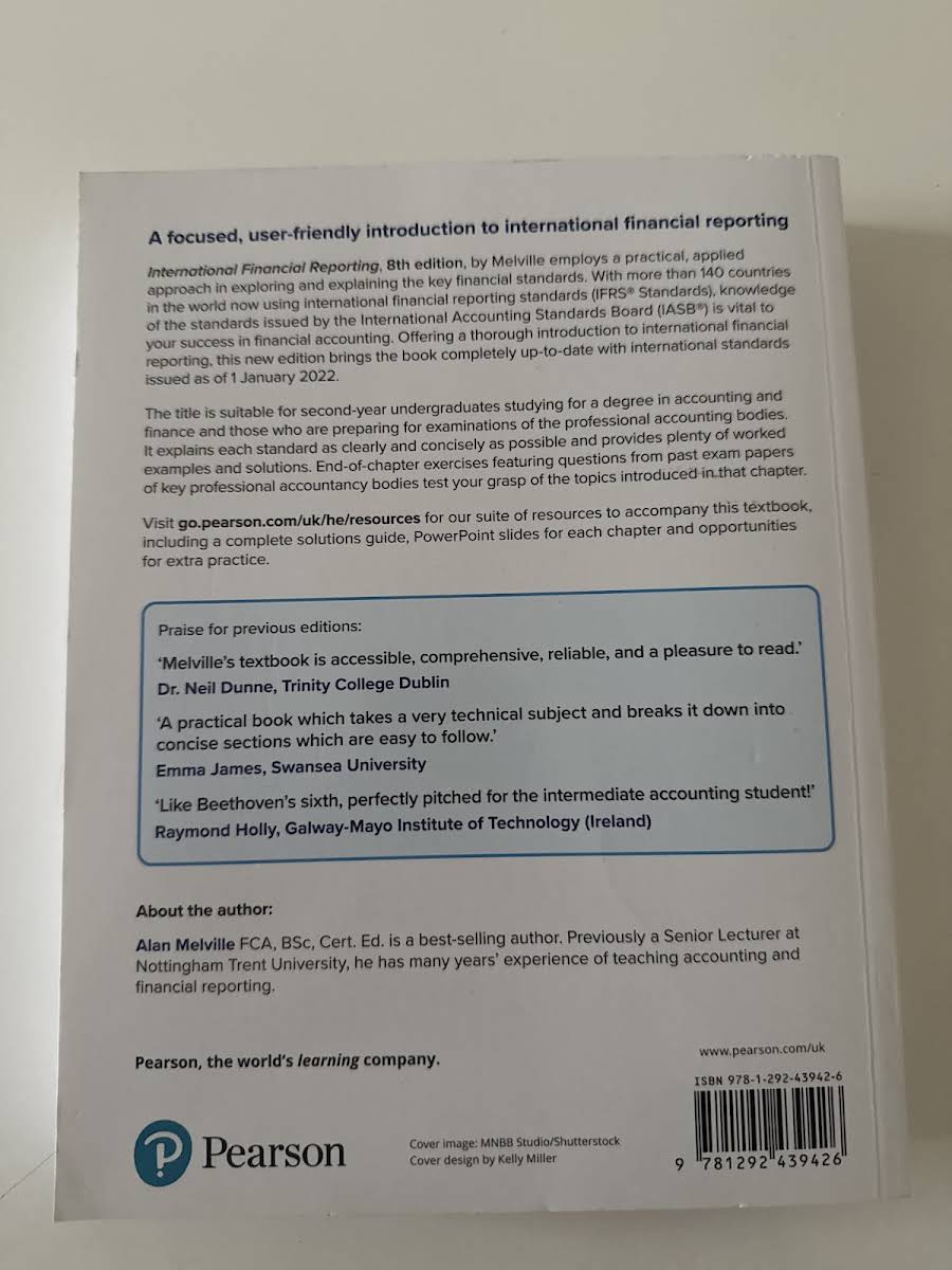 International Financial Reporting, 8th edition by Alan Melville, offers a clear and practical introduction to the essential international financial standards. Now updated with the latest requirements as of 1 January 2022, this textbook is designed for second-year undergraduates in accounting and finance as well as those preparing for professional examinations. The book provides concise explanations of each standard, supported by numerous worked examples and solutions to illuminate complex concepts. With its accessible and structured approach, the text breaks down technical topics into manageable sections. End-of-chapter exercises, featuring questions inspired by past professional exam papers, are included to test your understanding of the material. International Financial Reporting serves as an indispensable guide for building a solid foundation in the principles and practices of international financial reporting.