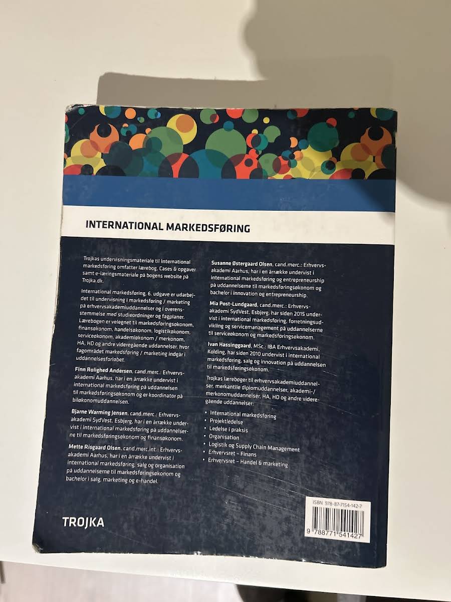 • International Markedsføring, lærebog, Finn  Rolighed Andersen, Bjarne  Warming Jensen, Mette Risgaard Olsen, Susanne Østergaard Olsen, Mia Post-Lundgaard, Ivan Hassinggaard, 9788771541427