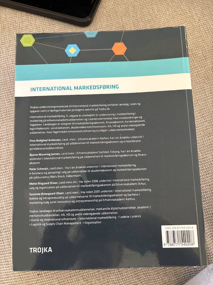 International markedsføring, 5. udgave, er en grundlæggende lærebog, der er udarbejdet med henblik på undervisningen på erhvervsakademiuddannelser samt på videregående uddannelser, hvor fagområdet markedsføring indgår. Bogen er nøje tilpasset studieordninger og fagplaner og danner grundlaget for en dybdegående forståelse af internationale markedsføringsstrategier og -teorier. I denne udgave er der foretaget en række opdateringer, hvor de nyeste udviklingstendenser og teorier er inddraget. Lærebogen indeholder et bredt spektrum af modeller og metoder, som giver de studerende redskaberne til at forstå og anvende markedsføring i en global kontekst. Med sin solide teori og praktiske tilgang er bogen et uundværligt værktøj for alle, der ønsker en grundig indføring i international markedsføring.