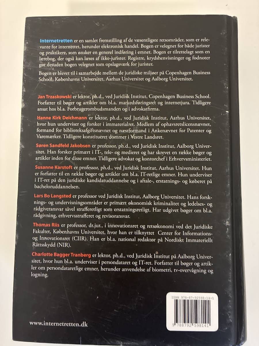 Internetretten by Jan Trzaskowski giver en omfattende gennemgang af de centrale retsområder, der finder anvendelse i internetmiljøet, herunder spørgsmål om elektronisk handel. På baggrund af en grundig analyse af digital jura præsenterer bogen de juridiske principper og problemstillinger, der er uundværlige for dem, der arbejder med eller interesserer sig for internettets rettigheder og forpligtelser. Bogen er udformet som en lærebog med et overskueligt og systematisk layout, der også henvender sig til ikke-jurister. Tydelige registre, krydshenvisninger og uddybende fodnoter gør værket til et uundværligt opslagsværk for både jurister og praktikere. Internetretten afspejler et bredt samarbejde blandt juridiske miljøer, hvilket understreger bogens kvalitet og aktualitet.