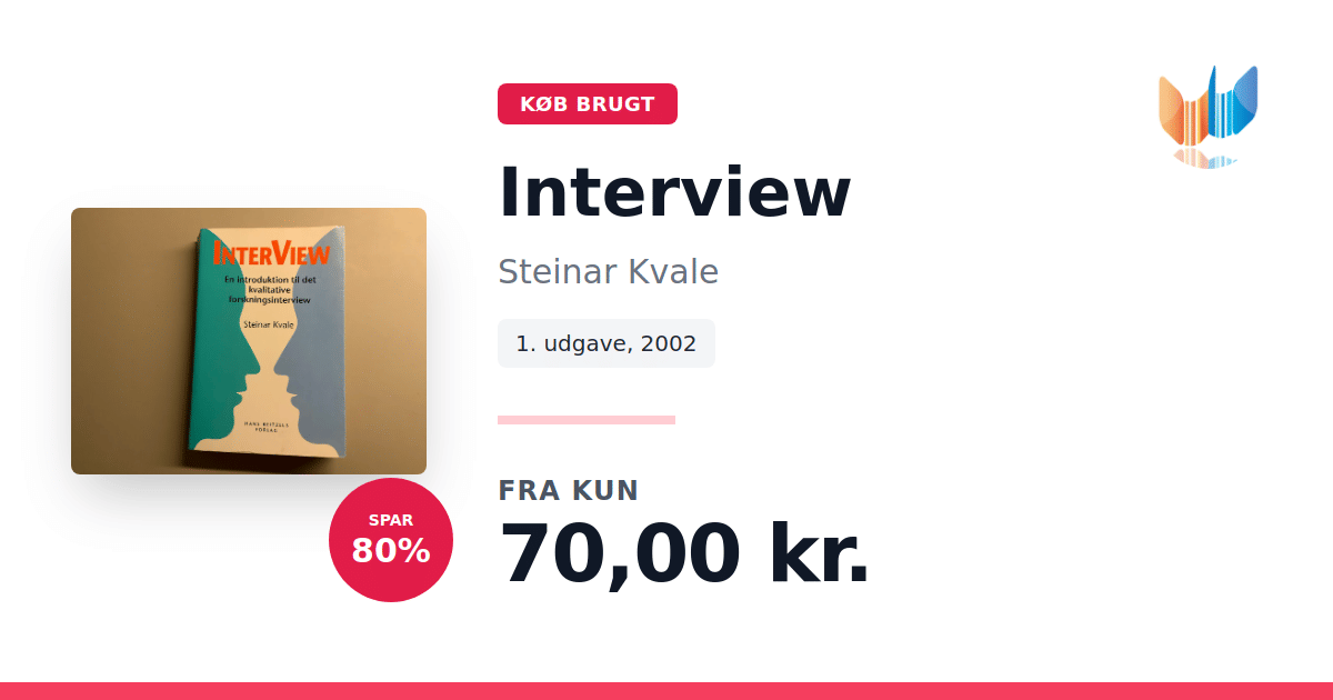 Interview, skrevet af Steinar Kvale, dykker ned i interviewets kunst og teori på en engageret og indsigtsfuld måde. Bogen udfolder de centrale metoder og teknikker, der er nødvendige for at føre både strukturerede og spontane samtaler med succes. Med 318 sider tilbyder denne paperback fra Gyldendal en solid og praktisk tilgang, der henvender sig til både nye interviewere og erfarne praktikere. Kvales skarpe analyser og letforståelige formidling gør Interview til et uundværligt redskab for alle, der ønsker at forbedre deres færdigheder inden for samtaleteknik.