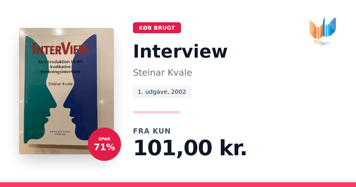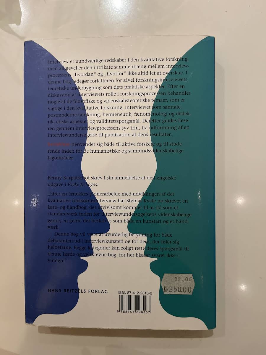 Interview, skrevet af Steinar Kvale, dykker ned i interviewets kunst og teori på en engageret og indsigtsfuld måde. Bogen udfolder de centrale metoder og teknikker, der er nødvendige for at føre både strukturerede og spontane samtaler med succes. Med 318 sider tilbyder denne paperback fra Gyldendal en solid og praktisk tilgang, der henvender sig til både nye interviewere og erfarne praktikere. Kvales skarpe analyser og letforståelige formidling gør Interview til et uundværligt redskab for alle, der ønsker at forbedre deres færdigheder inden for samtaleteknik.