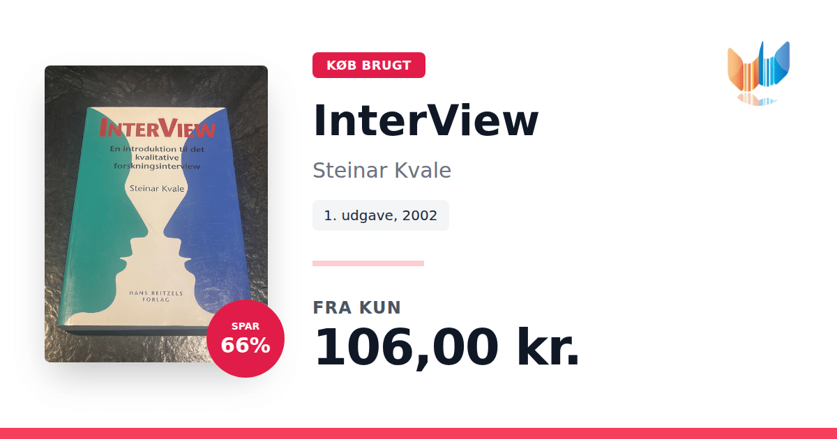 Interview, skrevet af Steinar Kvale, dykker ned i interviewets kunst og teori på en engageret og indsigtsfuld måde. Bogen udfolder de centrale metoder og teknikker, der er nødvendige for at føre både strukturerede og spontane samtaler med succes. Med 318 sider tilbyder denne paperback fra Gyldendal en solid og praktisk tilgang, der henvender sig til både nye interviewere og erfarne praktikere. Kvales skarpe analyser og letforståelige formidling gør Interview til et uundværligt redskab for alle, der ønsker at forbedre deres færdigheder inden for samtaleteknik.
