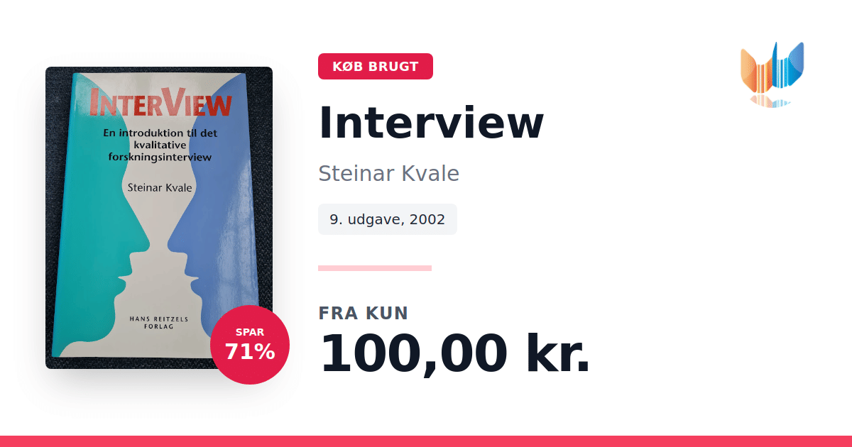 Interview, skrevet af Steinar Kvale, dykker ned i interviewets kunst og teori på en engageret og indsigtsfuld måde. Bogen udfolder de centrale metoder og teknikker, der er nødvendige for at føre både strukturerede og spontane samtaler med succes. Med 318 sider tilbyder denne paperback fra Gyldendal en solid og praktisk tilgang, der henvender sig til både nye interviewere og erfarne praktikere. Kvales skarpe analyser og letforståelige formidling gør Interview til et uundværligt redskab for alle, der ønsker at forbedre deres færdigheder inden for samtaleteknik.