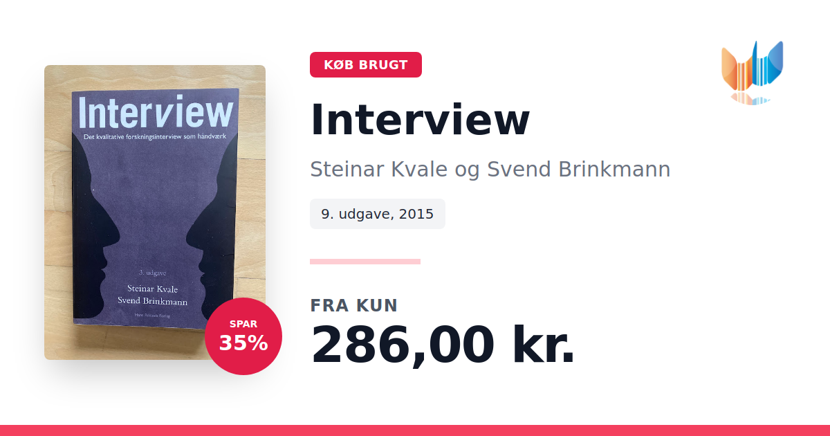 "Interview" af Steinar Kvale og Svend Brinkmann er en essentiel grundbog for studerende og forskere, der ønsker at mestre interviewets mange facetter. Bogen kombinerer en teoretisk forståelse med en praktisk tilgang, der tilsammen giver læseren en solid introduktion til interviewets udfordringer og muligheder. I denne tredje udgave, der udkom i 2015 hos Hans Reitzels Forlag, bliver du præsenteret for nye udviklingstendenser inden for kvalitativ interviewforskning. Med en klar og logisk opbygning bliver både de epistemologiske og etiske aspekter belyst, så du får redskaberne til at håndtere de mange former for spørgsmål og problemstillinger, der opstår i interviewprocessen. Bogens gennemarbejdede struktur og flydende sprog sikrer, at den forbliver en trofast følgesvend, uanset om du er nybegynder eller allerede arbejder med interviewteknikker. "Interview" udgør dermed ikke blot en teoretisk indføring, men også en praktisk guide til at udvikle dit håndværk og nå dine forskningsmål.