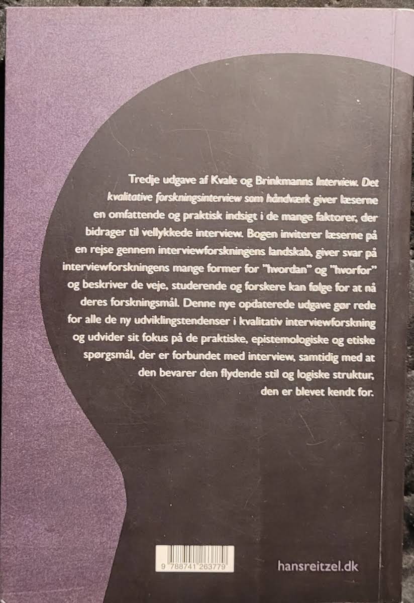 "Interview" af Steinar Kvale og Svend Brinkmann er en essentiel grundbog for studerende og forskere, der ønsker at mestre interviewets mange facetter. Bogen kombinerer en teoretisk forståelse med en praktisk tilgang, der tilsammen giver læseren en solid introduktion til interviewets udfordringer og muligheder. I denne tredje udgave, der udkom i 2015 hos Hans Reitzels Forlag, bliver du præsenteret for nye udviklingstendenser inden for kvalitativ interviewforskning. Med en klar og logisk opbygning bliver både de epistemologiske og etiske aspekter belyst, så du får redskaberne til at håndtere de mange former for spørgsmål og problemstillinger, der opstår i interviewprocessen. Bogens gennemarbejdede struktur og flydende sprog sikrer, at den forbliver en trofast følgesvend, uanset om du er nybegynder eller allerede arbejder med interviewteknikker. "Interview" udgør dermed ikke blot en teoretisk indføring, men også en praktisk guide til at udvikle dit håndværk og nå dine forskningsmål.