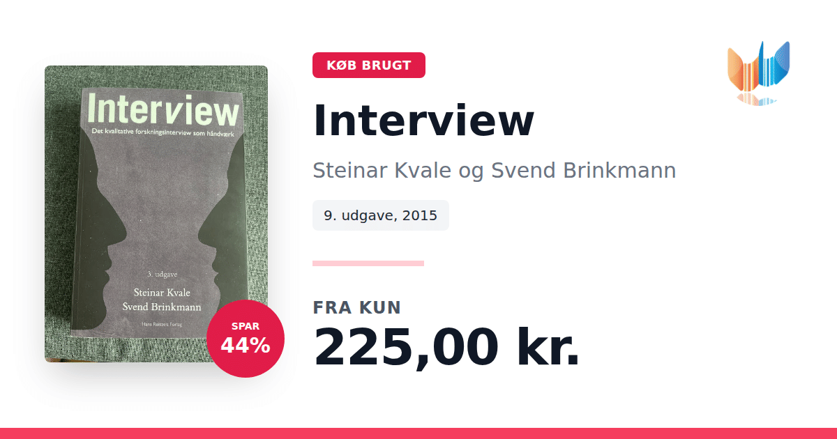 "Interview" af Steinar Kvale og Svend Brinkmann er en essentiel grundbog for studerende og forskere, der ønsker at mestre interviewets mange facetter. Bogen kombinerer en teoretisk forståelse med en praktisk tilgang, der tilsammen giver læseren en solid introduktion til interviewets udfordringer og muligheder. I denne tredje udgave, der udkom i 2015 hos Hans Reitzels Forlag, bliver du præsenteret for nye udviklingstendenser inden for kvalitativ interviewforskning. Med en klar og logisk opbygning bliver både de epistemologiske og etiske aspekter belyst, så du får redskaberne til at håndtere de mange former for spørgsmål og problemstillinger, der opstår i interviewprocessen. Bogens gennemarbejdede struktur og flydende sprog sikrer, at den forbliver en trofast følgesvend, uanset om du er nybegynder eller allerede arbejder med interviewteknikker. "Interview" udgør dermed ikke blot en teoretisk indføring, men også en praktisk guide til at udvikle dit håndværk og nå dine forskningsmål.