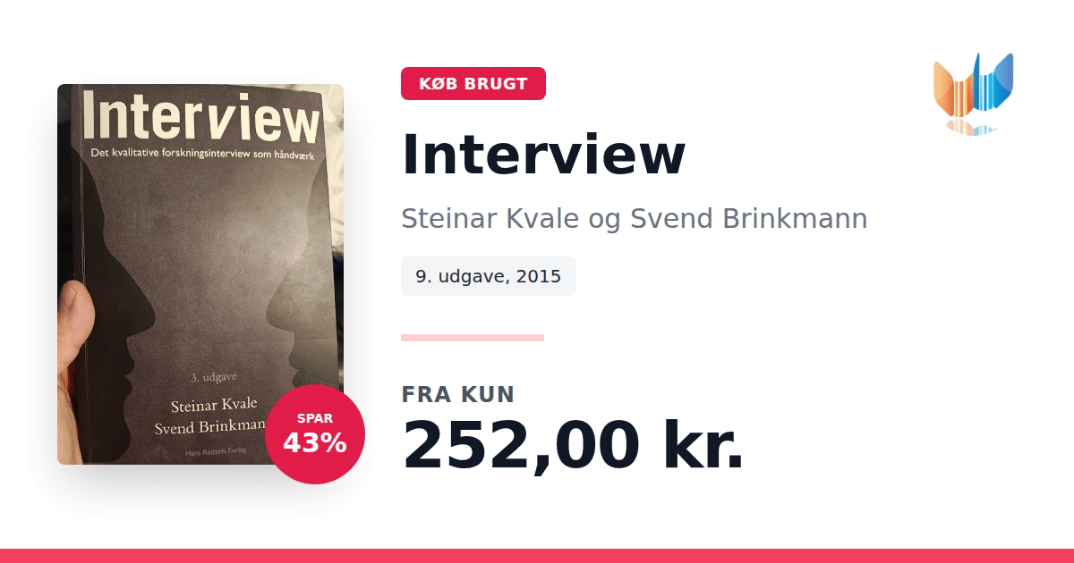 "Interview" af Steinar Kvale og Svend Brinkmann er en essentiel grundbog for studerende og forskere, der ønsker at mestre interviewets mange facetter. Bogen kombinerer en teoretisk forståelse med en praktisk tilgang, der tilsammen giver læseren en solid introduktion til interviewets udfordringer og muligheder. I denne tredje udgave, der udkom i 2015 hos Hans Reitzels Forlag, bliver du præsenteret for nye udviklingstendenser inden for kvalitativ interviewforskning. Med en klar og logisk opbygning bliver både de epistemologiske og etiske aspekter belyst, så du får redskaberne til at håndtere de mange former for spørgsmål og problemstillinger, der opstår i interviewprocessen. Bogens gennemarbejdede struktur og flydende sprog sikrer, at den forbliver en trofast følgesvend, uanset om du er nybegynder eller allerede arbejder med interviewteknikker. "Interview" udgør dermed ikke blot en teoretisk indføring, men også en praktisk guide til at udvikle dit håndværk og nå dine forskningsmål.