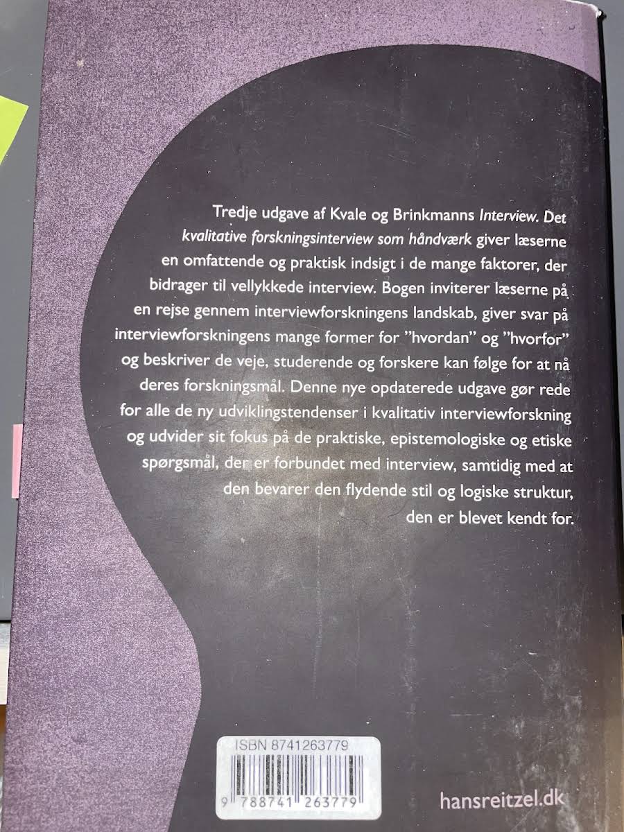 "Interview" af Steinar Kvale og Svend Brinkmann er en essentiel grundbog for studerende og forskere, der ønsker at mestre interviewets mange facetter. Bogen kombinerer en teoretisk forståelse med en praktisk tilgang, der tilsammen giver læseren en solid introduktion til interviewets udfordringer og muligheder. I denne tredje udgave, der udkom i 2015 hos Hans Reitzels Forlag, bliver du præsenteret for nye udviklingstendenser inden for kvalitativ interviewforskning. Med en klar og logisk opbygning bliver både de epistemologiske og etiske aspekter belyst, så du får redskaberne til at håndtere de mange former for spørgsmål og problemstillinger, der opstår i interviewprocessen. Bogens gennemarbejdede struktur og flydende sprog sikrer, at den forbliver en trofast følgesvend, uanset om du er nybegynder eller allerede arbejder med interviewteknikker. "Interview" udgør dermed ikke blot en teoretisk indføring, men også en praktisk guide til at udvikle dit håndværk og nå dine forskningsmål.