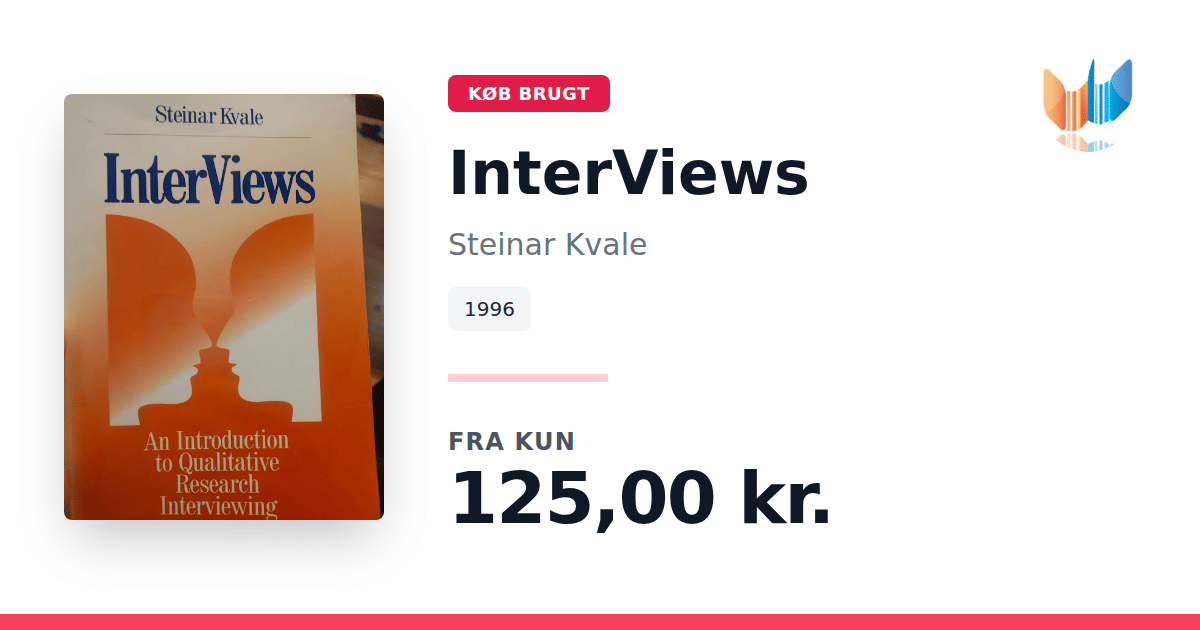 Lige nu kan du købe "InterViews" af Steinar Kvale til kun 125,00 kr. Bogen du ser her er brugt, og i god stand. Vi har i øjeblikket kun et enkelt eksemplar til salg af "InterViews", så slå til mens du kan!