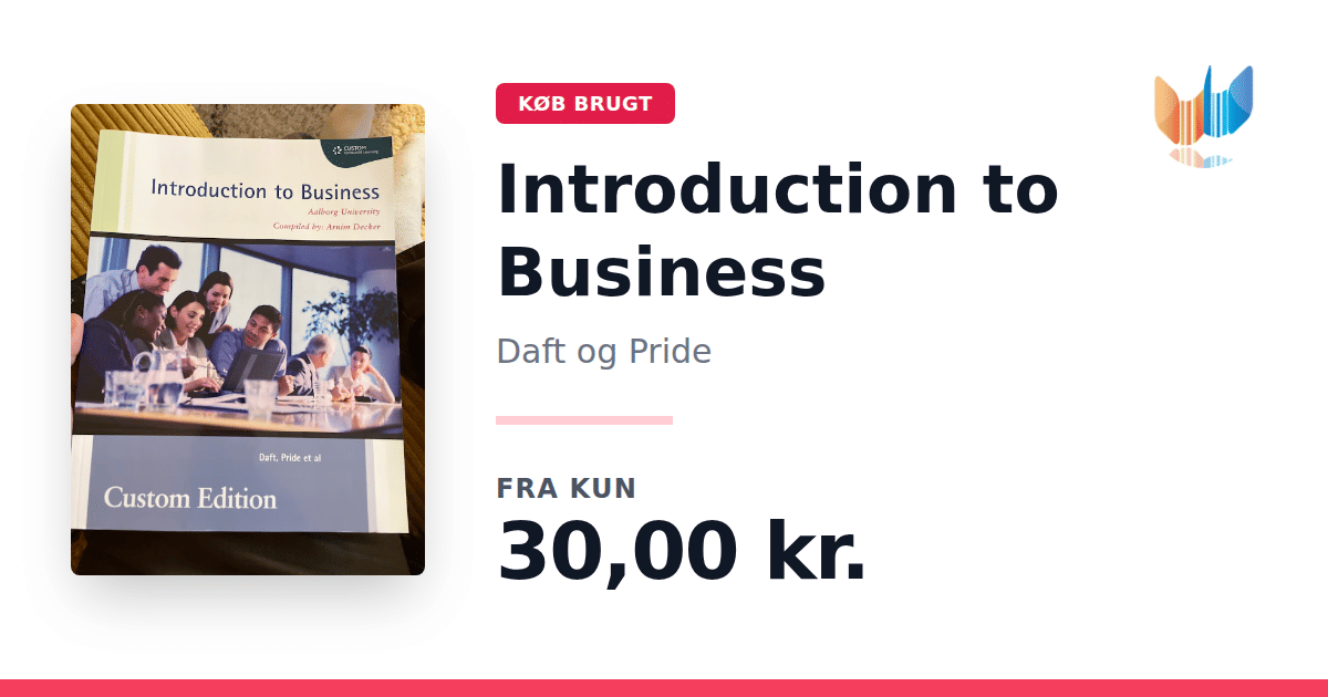 Lige nu kan du købe "Introduction to Business" af Daft og Pride til kun 30,00 kr. Bogen du ser her er brugt, og i perfekt stand. Vi har i øjeblikket 2 eksemplarer til salg af "Introduction to Business", så husk at se de forskellige udgaver.