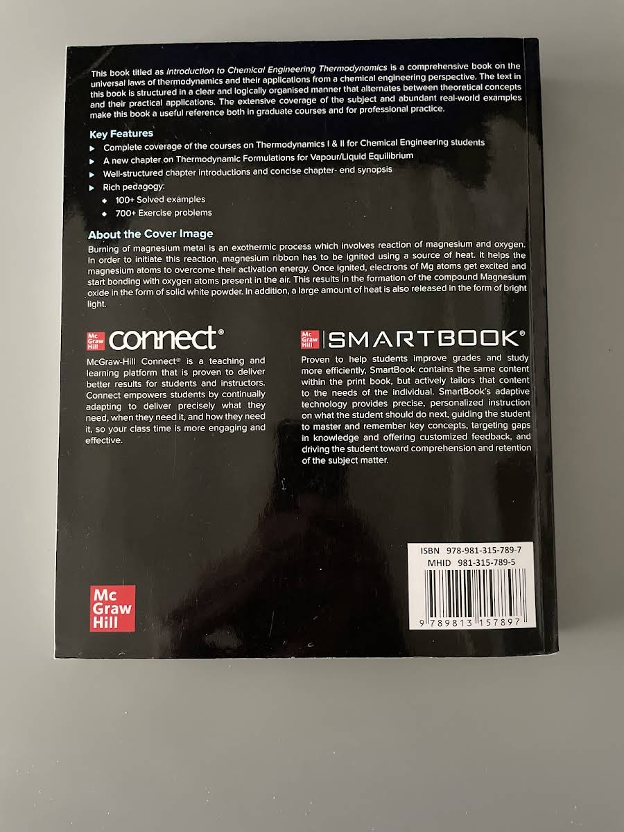 • Introduction to Chemical Engineering Thermodynamics, H. C. Van Ness, Smith, M. M. Abbott, 9789813157897