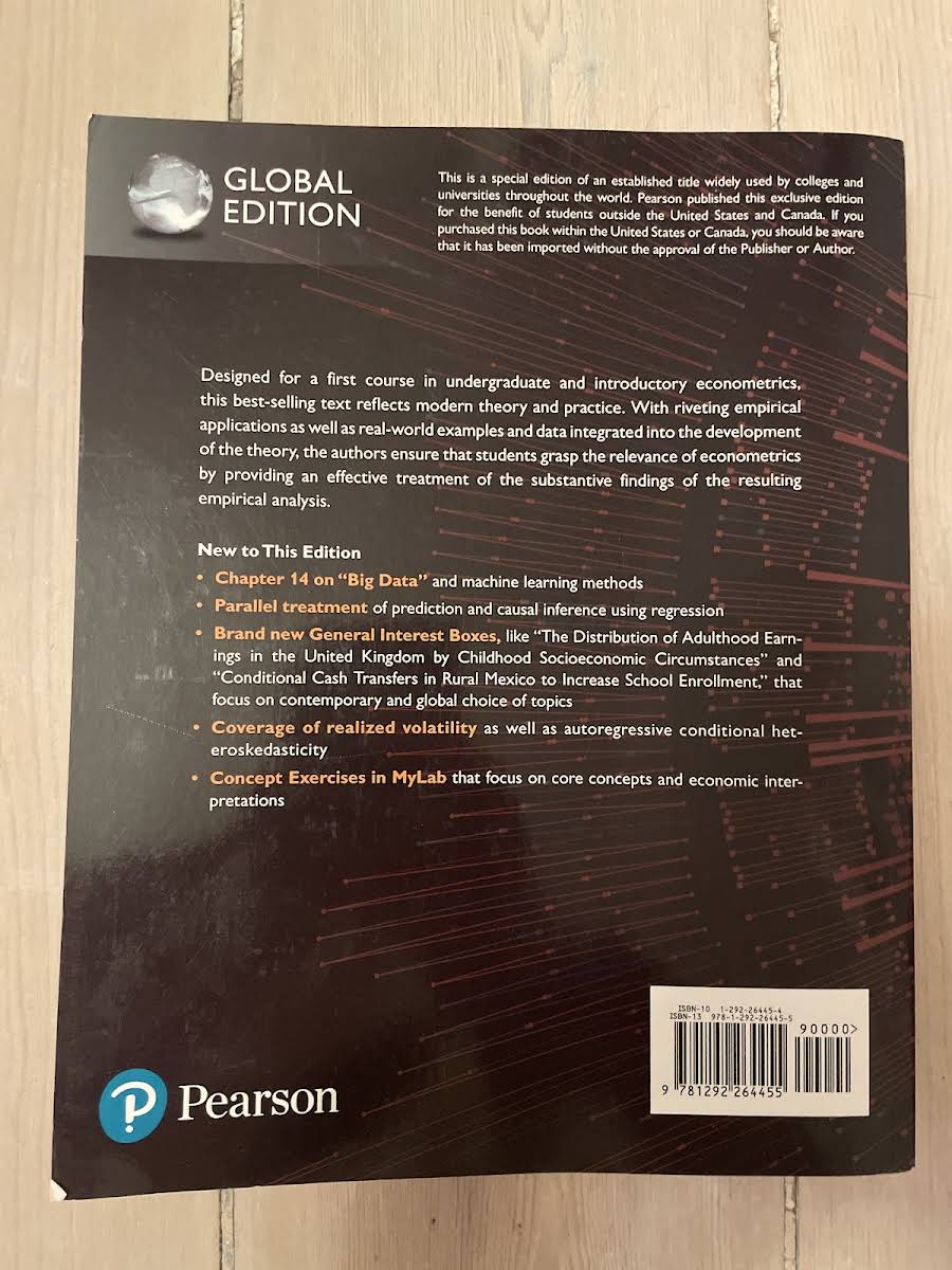 • Introduction to Econometrics, Global Edition, James Stock, Mark W. Watson, 9781292264455