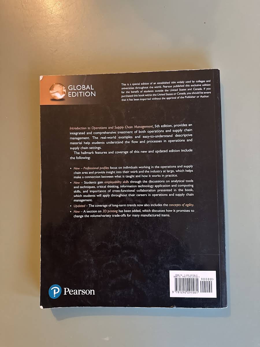 "Introduction to Operations and Supply Chain Management, Global Edition" by Cecil B. Bozarth and Robert Handfield provides a clear and concise introduction to the essential principles of operations and supply chain management. Tailored for students, the text blends theory with real-world examples to create an accessible and cohesive learning experience. Now in its 5th Edition (2019), this updated paperback integrates key topics and analytical techniques that are crucial in today’s dynamic business environment. With practical case studies and easy-to-follow explanations, the book equips readers with the insights needed to apply these concepts in varied professional settings.