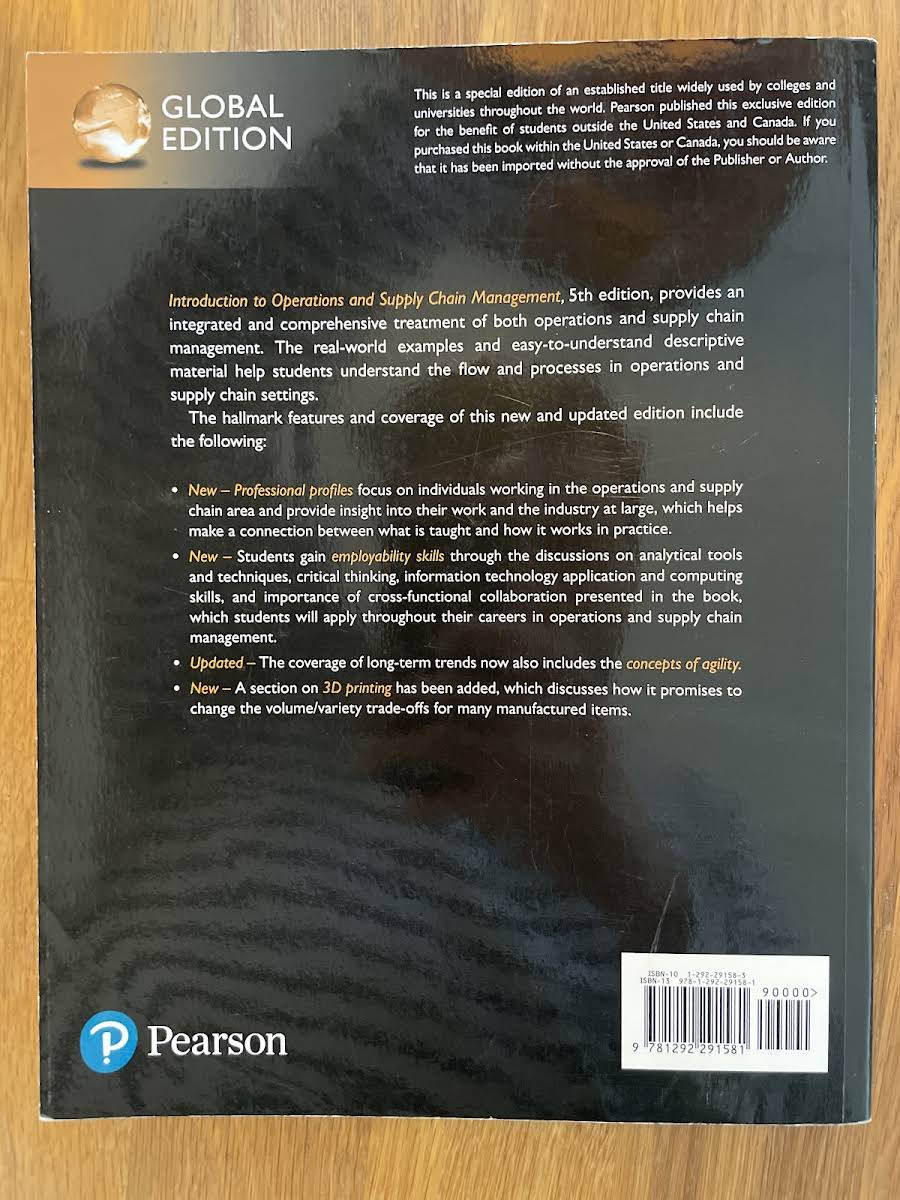 "Introduction to Operations and Supply Chain Management, Global Edition" by Cecil B. Bozarth and Robert Handfield provides a clear and concise introduction to the essential principles of operations and supply chain management. Tailored for students, the text blends theory with real-world examples to create an accessible and cohesive learning experience. Now in its 5th Edition (2019), this updated paperback integrates key topics and analytical techniques that are crucial in today’s dynamic business environment. With practical case studies and easy-to-follow explanations, the book equips readers with the insights needed to apply these concepts in varied professional settings.