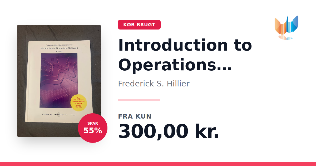 Introduction to Operations Research, 10. udgave (2014) af Frederick S. Hillier, giver en dybdegående indføring i operationsanalyse. Bogen præsenterer fundamentale principper og en systematisk tilgang til analytiske metoder. Med McGraw-Hill Educations anerkendte bagland får læseren et solidt fagligt fundament. Teksten indeholder et omfattende udvalg af spændende problemstillinger og illustrative casestudier, som styrker forståelsen af kernemetoder. Hver case er nøje udvalgt til at vise konkrete anvendelser af teorien. Opgaverne varierer i sværhedsgrad og giver en udfordrende arbejdsoplevelse for studerende. Der medfølger operations research-software, som bruges sideløbende med eksempler fra teksten, så man kan afprøve metoderne i praksis. Softwaren fremmer en interaktiv læringsproces og hjælper med at visualisere komplekse problemstillinger. Kombinationen af teori, øvelser og software gør bogen velegnet til både undervisning og selvstudium.