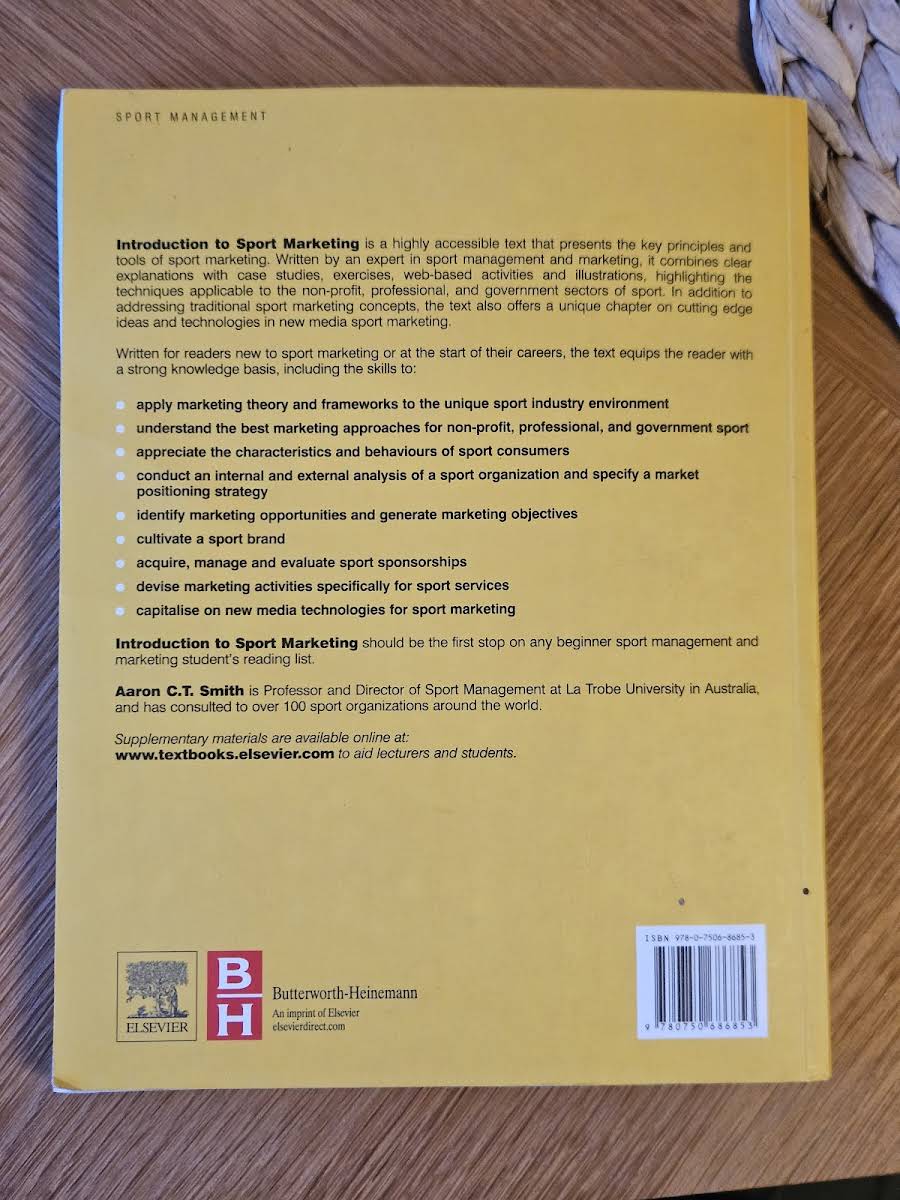 Introduction to Sport Marketing af Aaron Smith er en lettilgængelig introduktion til sportens komplekse verden og giver nybegyndere et solidt fundament i sportsmarketing. Bogen gennemgår grundlæggende principper og praksisser, så læseren forstår, hvordan strategisk marketing anvendes i sportsbranchen. Læseren lærer at anvende marketingteori specifikt i en sportsorganisation, herunder interne og eksterne analyser for at kortlægge markedsmuligheder. Aaron Smith viser også, hvordan man omdanner disse muligheder til klare marketingmål. Med et effektivt marketingframework guides man trin for trin i udviklingen af en strategisk sport marketing-retning. Her behandles blandt andet segmentering, målgruppeudvælgelse, differentiering og de fire P’er, mens kontrol- og kvalitetsværktøjer præsenteres til løbende at overvåge og tilpasse indsatsen. Bogen er spækket med cases, spørgsmål, øvelser og illustrationer og understøttes af online materialer. Introduction to Sport Marketing bør være det første stop for alle, der vil kickstarte deres karriere inden for sportsmanagement og -marketing.