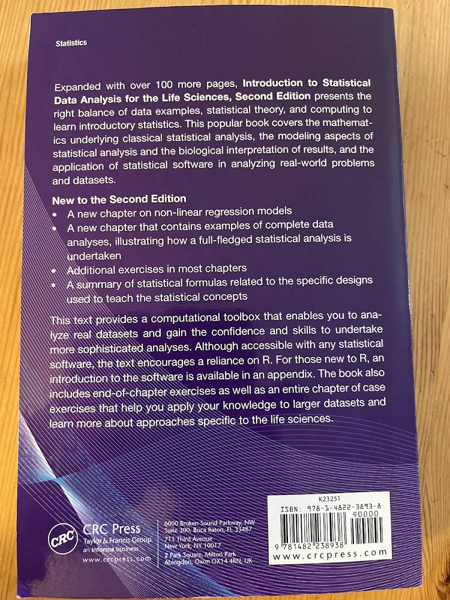 "Introduction to Statistical Data Analysis for the Life Sciences" er en introduktion til statistisk dataanalyse i det biovidenskabelige felt, præsenteret med den rette balance af dataeksempler, statistisk teori og databehandling. Lærebogen dækker matematikken bag den klassiske statistiske analyse, modeleringsaspekterne af statistisk analyse, den biologiske fortolkning af resultaterne og anvendelsen af statistisk software i analysen af virkelighedens problemer og datasæt.