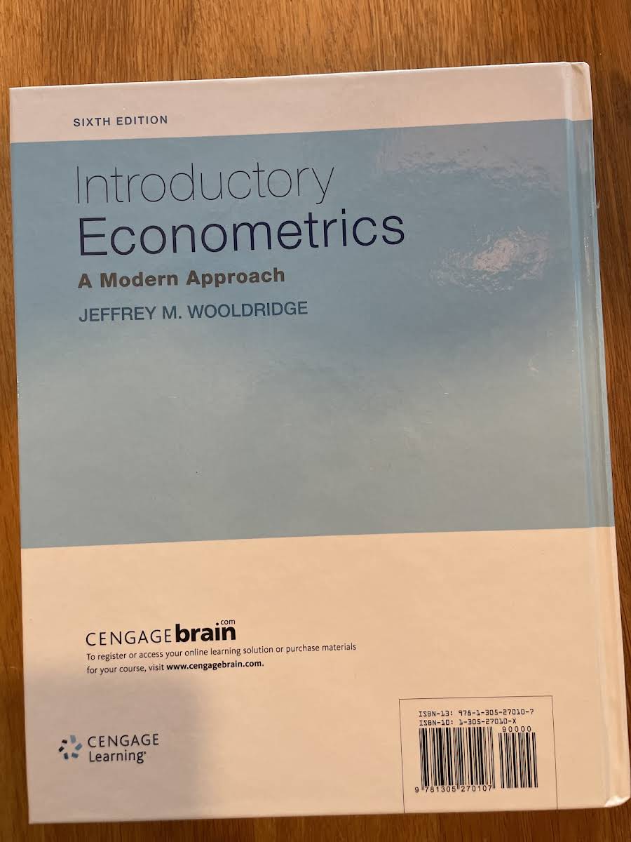 Introductory Econometrics: A Modern Approach (6. udg., 2015) af Jeffrey M. Wooldridge giver et praktisk indblik i, hvordan empiriske økonomer i dag bruger kvantitative metoder til at belyse spørgsmål inden for erhvervsliv, politik og forecasting. Denne udgave viser tydeligt, at økonometri har udviklet sig fra abstrakte modeller til et effektivt værktøj i virkelighedens problemstillinger. Bogen er struktureret efter de forskellige typer data, så de nødvendige antagelser kun præsenteres, når de bliver relevante. Den systematiske fremstilling gør det lettere at følge teorien og fremmer en solid forståelse, der styrker de praktiske økonometriske færdigheder. Med over 100 autentiske datasæt leveret i seks formater og opdateringer, der afspejler de nyeste tendenser i faget, er denne 912-siders hardcover en uvurderlig kilde til indsigt og anvendelse af moderne økonometri.
