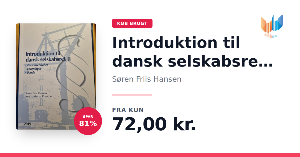 "Introduktion til dansk selskabsret – Personselskaber, foreninger og fonde" er den anden udgave af et centralt værk, der giver et solidt indblik i de retlige rammer for personerelaterede selskabsformer, foreninger og fonde. Bogen er nøje udformet med henblik på at give både studerende og andre interesserede en struktureret og overskuelig introduktion til emnet. Med en klar og pædagogisk fremstilling gennemgår forfatterne de væsentligste selskabsretlige regler og principper, der gælder for blandt andet interessentskaber, kommanditselskaber, andelsselskaber samt de specifikke regler for foreninger og fonde. Værket er tilpasset undervisningen på juridiske og erhvervsjuridiske bacheloruddannelser, men det giver også en værdifuld introduktion for alle, der ønsker et overblik over dansk selskabsret. Med autoriteter som Søren Friis Hansen og Jens Valdemar Krenchel bag bogen sikres læseren en dybdegående og opdateret behandling af faget, idet indholdet afspejler både aktuelle retsregler og de teoretiske overvejelser, der præger moderne selskabsret.