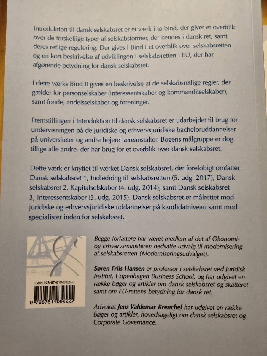 "Introduktion til dansk selskabsret II – Personselskaber, foreninger, fonde" er en grundlæggende og opdateret redegørelse for de selskabsretlige regler, der omfatter personselskaber såsom interessentskaber og kommanditselskaber samt de særlige regler for foreninger, fonde og andelsselskaber. I dette bind, der udgør del to af værket "Introduktion til dansk selskabsret", præsenteres et detaljeret overblik over de retsregler og forvaltningsmæssige principper, der har betydning for den praktiske håndtering af disse selskabsformer. Bogen er nøje sammensat med henblik på at afspejle de seneste tendenser og ændringer inden for dansk selskabsret. Den tredje udgave fra 2017 af denne publikation af Karnov Group Denmark sikrer læseren adgang til opdateret viden og er et uundværligt redskab for jurister, studerende og praktikere, der ønsker en dybdegående indsigt i de retlige aspekter af personselskaber, foreninger og fonde.