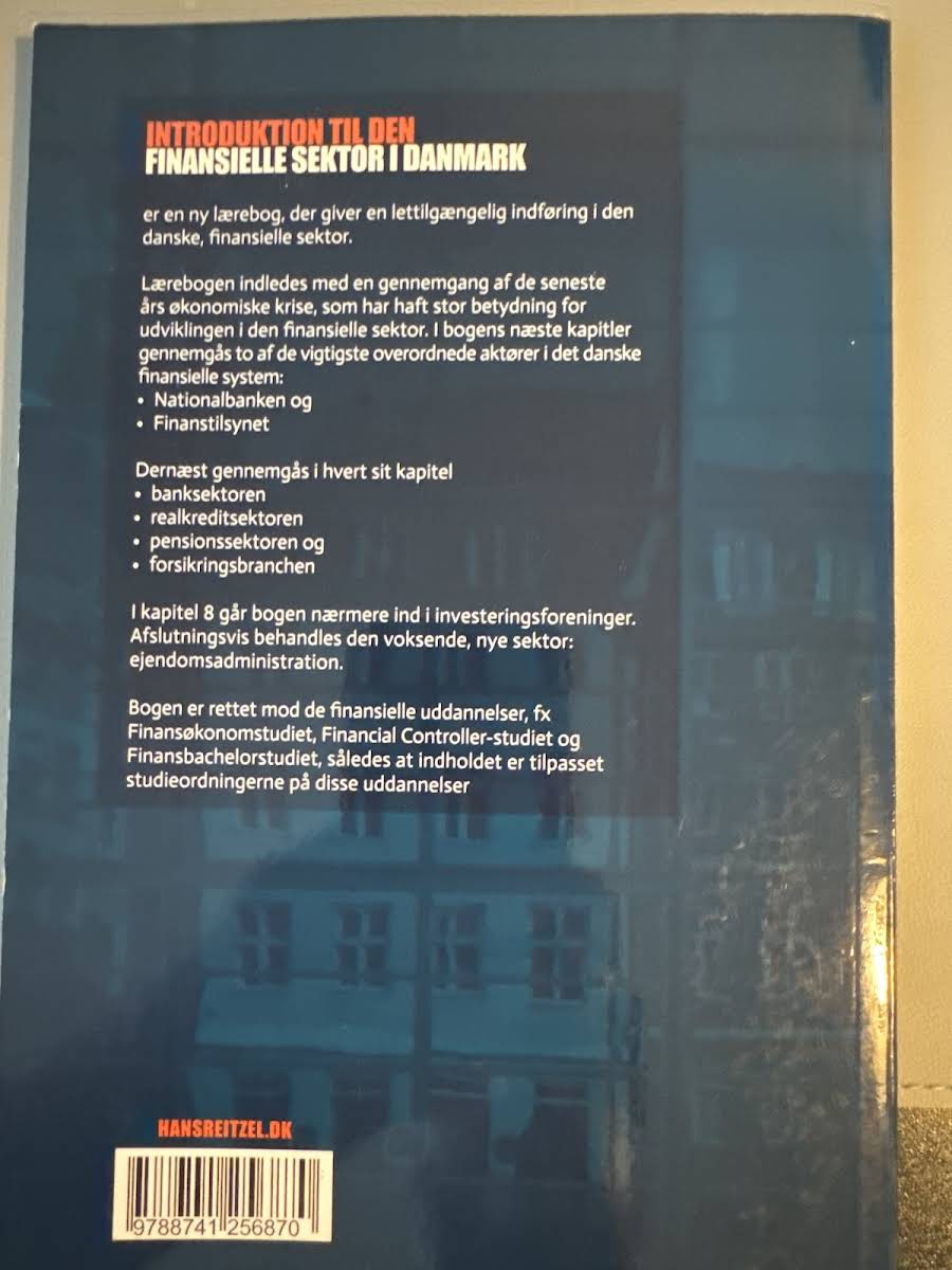 "Introduktion til den finansielle sektor i Danmark" tilbyder en klar og lettilgængelig gennemgang af de centrale aktører og institutioner, der former det danske finansielle landskab. Forfatterne Mikkel Harbo Bossow, Anne Marie Oksen og Karsten Gerlif fører læseren sikkert gennem de grundlæggende principper, som ligger til grund for den finansielle sektor. Bogen præsenterer en række nøgleområder, herunder pengeinstitutter, realkredit, ejendomsadministration, pensionssektoren, forsikring og investeringsforeninger. Med udgangspunkt i centrale institutioner som Nationalbanken og Finanstilsynet illustreres de historiske, aktuelle og fremtidige udfordringer, som sektoren står overfor. Gennem en brugervenlig tilgang opnås en dybere forståelse af, hvordan de finansielle systemer påvirker både individers og virksomheders økonomiske situation. Med sine 136 sider giver bogen et solidt fundament for studerende og andre, der ønsker indblik i, hvordan den finansielle sektor bidrager til det danske samfund."
