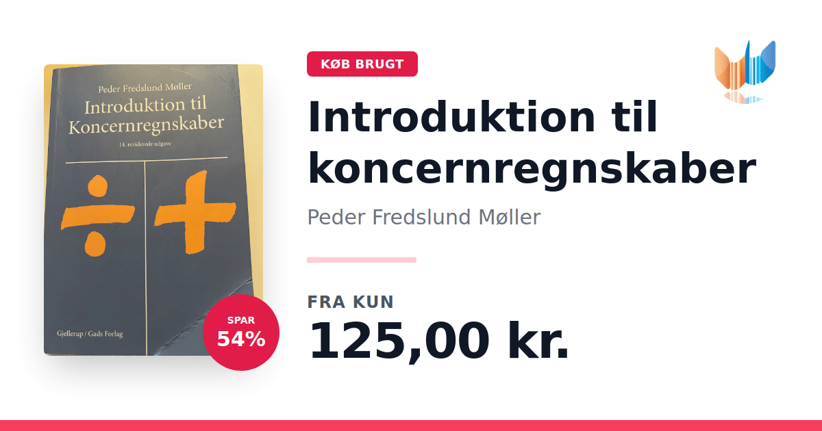 Lige nu kan du købe "Introduktion til koncernregnskaber" af Peder Fredslund Møller til kun 125,00 kr. Du sparer hele 54% af nyprisen! Bogen du ser her er brugt, og i god stand. Vi har i øjeblikket 6 eksemplarer til salg af "Introduktion til koncernregnskaber", så husk at se de forskellige udgaver.