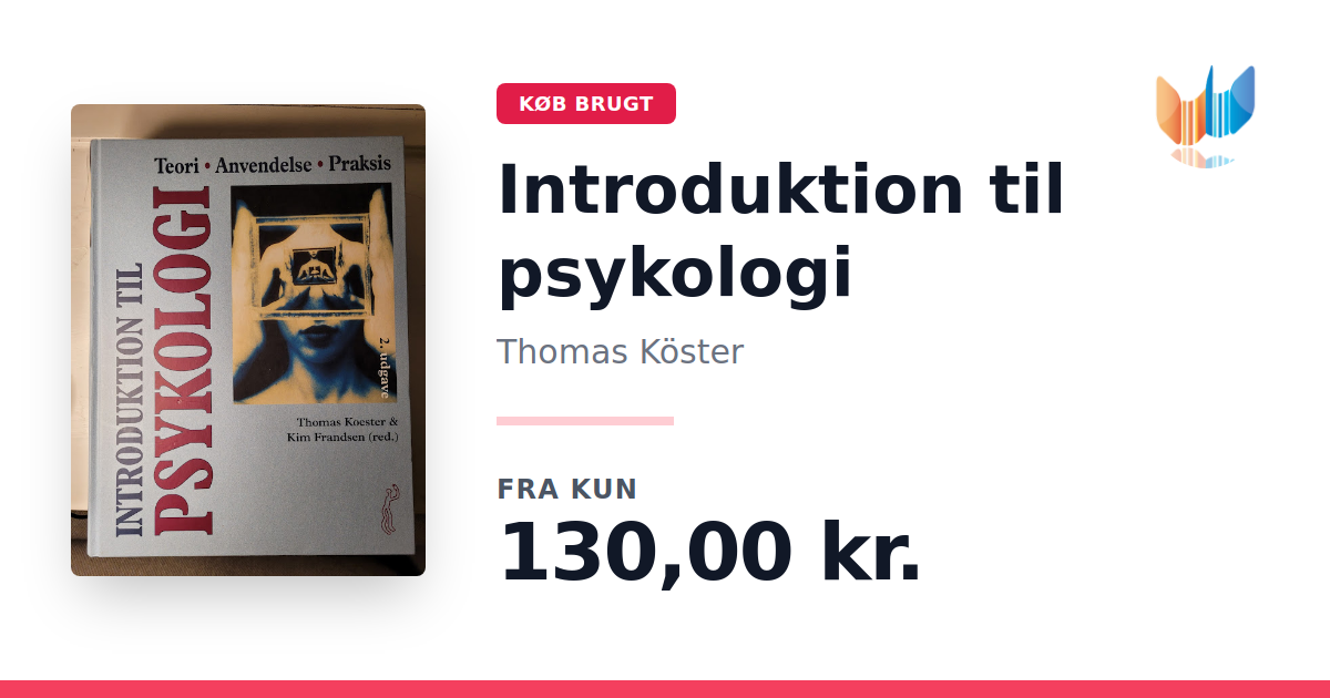 Lige nu kan du købe "Introduktion til psykologi" af Thomas Köster til kun 130,00 kr. Bogen du ser her er brugt, og i god stand. Vi har i øjeblikket kun et enkelt eksemplar til salg af "Introduktion til psykologi", så slå til mens du kan!